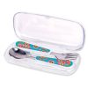 Perlengkapan makan anak yang didesain dengan gambar dan warna yang menarik.